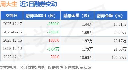 融券方面,当日融券卖出200.0股,融券偿还2700.0股,融券净买入2500.0股,融券余量1.44万股。