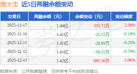 证券之星消息,12月17日,周大生(002867)融资买入986.3万元,融资偿还647.68万元,融资净买入338.62万元,融资余额1.44亿元,近20个交易日中有12个交易日出现融资净买入。