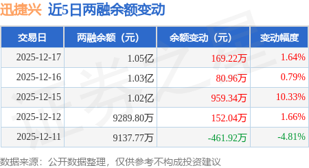 证券之星消息,12月17日,迅捷兴(688655)融资买入407.19万元,融资偿还237.97万元,融资净买入169.22万元,融资余额1.05亿元,近3个交易日已连续净买入累计1209.52万元。