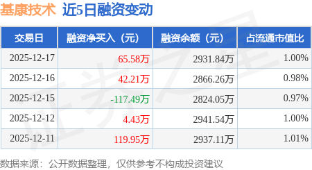 证券之星消息,12月17日,基康技术(920879)融资买入135.63万元,融资偿还70.05万元,融资净买入65.58万元,融资余额2931.84万元,近20个交易日中有11个交易日出现融资净买入。