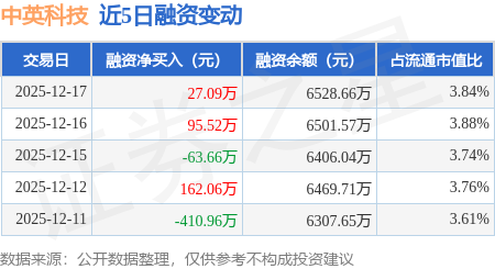 证券之星消息,12月17日,中英科技(300936)融资买入439.99万元,融资偿还412.9万元,融资净买入27.09万元,融资余额6528.66万元。