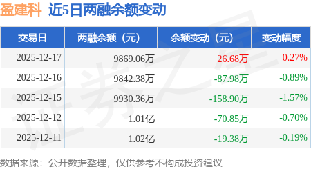 证券之星消息,12月17日,盈建科(300935)融资买入315.39万元,融资偿还288.71万元,融资净买入26.68万元,融资余额9869.06万元,近20个交易日中有12个交易日出现融资净买入。