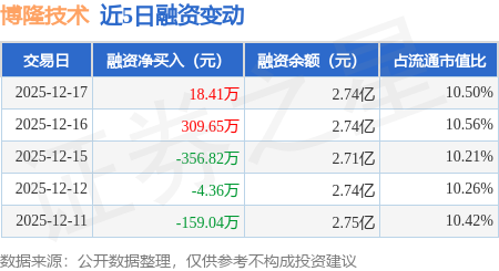 证券之星消息,12月17日,博隆技术(603325)融资买入674.14万元,融资偿还655.73万元,融资净买入18.41万元,融资余额2.74亿元。