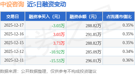 证券之星消息,12月17日,中设咨询(920873)融资买入2.99万元,融资偿还6.02万元,融资净卖出3.03万元,融资余额288.82万元。