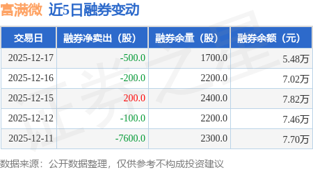 证券之星消息,12月17日,富满微(300671)融资买入1001.9万元,融资偿还1006.96万元,融资净卖出5.06万元,融资余额3.43亿元。