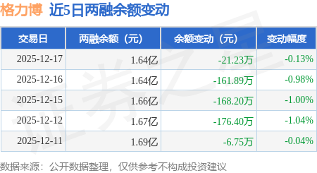 证券之星消息,12月17日,格力博(301260)融资买入259.3万元,融资偿还281.33万元,融资净卖出22.04万元,融资余额1.64亿元。
