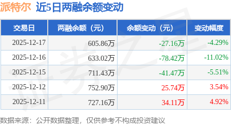 证券之星消息,12月17日,派特尔(920871)融资买入88.14万元,融资偿还115.3万元,融资净卖出27.16万元,融资余额605.86万元,近20个交易日中有12个交易日出现融资净买入。