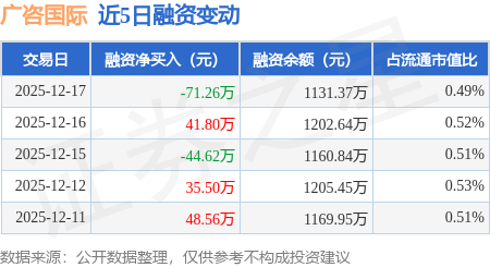 证券之星消息,12月17日,广咨国际(920892)融资买入32.09万元,融资偿还103.36万元,融资净卖出71.26万元,融资余额1131.37万元。