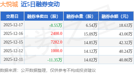 证券之星消息,12月17日,大悦城(000031)融资买入324.21万元,融资偿还415.55万元,融资净卖出91.35万元,融资余额2.44亿元,近20个交易日中有11个交易日出现融资净买入。