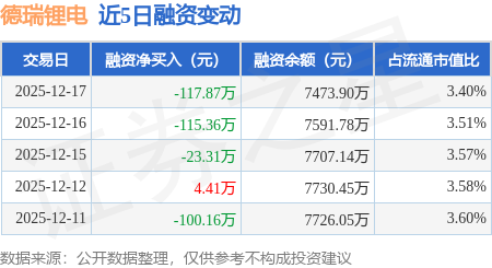 证券之星消息,12月17日,德瑞锂电(920523)融资买入352.04万元,融资偿还469.91万元,融资净卖出117.87万元,融资余额7473.9万元。