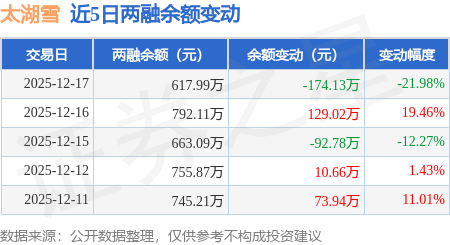 证券之星消息,12月17日,太湖雪(920262)融资买入284.41万元,融资偿还458.53万元,融资净卖出174.13万元,融资余额617.99万元。