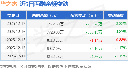 证券之星消息,12月17日,华之杰(603400)融资买入187.25万元,融资偿还438.03万元,融资净卖出250.78万元,融资余额7472.3万元。