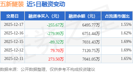 证券之星消息,12月17日,五新隧装(920174)融资买入191.92万元,融资偿还447.59万元,融资净卖出255.67万元,融资余额6495.77万元。
