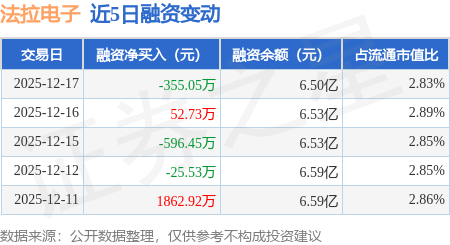 证券之星消息,12月17日,法拉电子(600563)融资买入3152.39万元,融资偿还3507.43万元,融资净卖出355.05万元,融资余额6.5亿元。