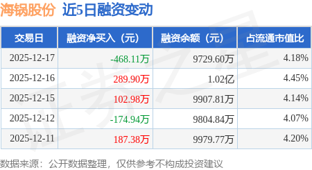 证券之星消息,12月17日,海锅股份(301063)融资买入581.42万元,融资偿还1049.54万元,融资净卖出468.11万元,融资余额9729.6万元,近20个交易日中有11个交易日出现融资净买入。