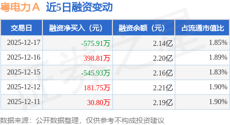 证券之星消息,12月17日,粤电力A(000539)融资买入759.0万元,融资偿还1334.91万元,融资净卖出575.91万元,融资余额2.14亿元,近20个交易日中有12个交易日出现融资净买入。