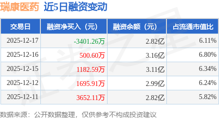 证券之星消息,12月17日,瑞康医药(002589)融资买入3242.75万元,融资偿还6644.0万元,融资净卖出3401.26万元,融资余额2.82亿元,近20个交易日中有12个交易日出现融资净买入。