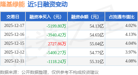 证券之星消息,12月17日,隆基绿能(601012)融资买入1.27亿元,融资偿还1.79亿元,融资净卖出5199.8万元,融资余额54.13亿元。