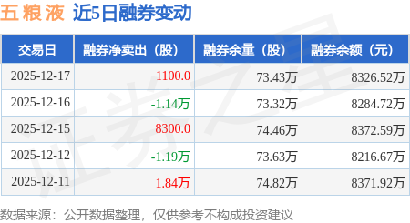 证券之星消息,12月17日,五 粮 液(000858)融资买入9415.71万元,融资偿还1.53亿元,融资净卖出5892.98万元,融资余额58.54亿元,近20个交易日中有11个交易日出现融资净买入。