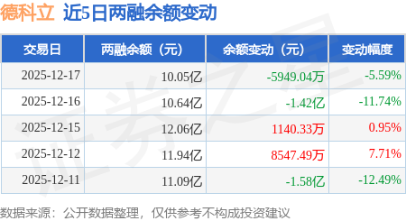 证券之星消息,12月17日,德科立(688205)融资买入2.18亿元,融资偿还2.78亿元,融资净卖出5949.17万元,融资余额10.04亿元,近20个交易日中有14个交易日出现融资净买入。