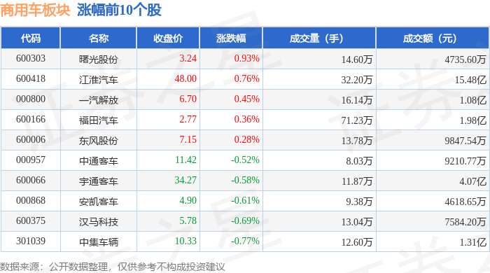 从资金流向上来看,当日商用车板块主力资金净流入1.44亿元,游资资金净流出1.2亿元,散户资金净流出2349.74万元。商用车板块个股资金流向见下表: