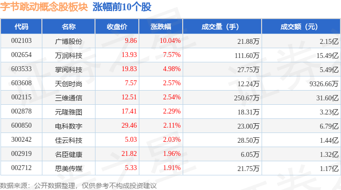 从资金流向上来看,当日字节跳动概念股板块主力资金净流出7.8亿元,游资资金净流入2326.88万元,散户资金净流入7.56亿元。字节跳动概念股板块个股资金流向见下表: