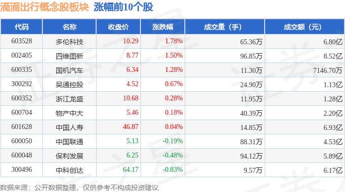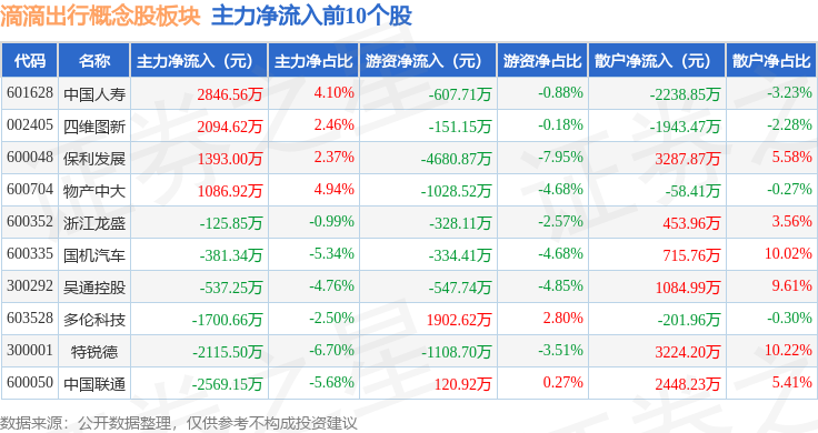 从资金流向上来看,当日滴滴出行概念股板块主力资金净流出3.58亿元,游资资金净流出7508.83万元,散户资金净流入4.33亿元。滴滴出行概念股板块个股资金流向见下表: