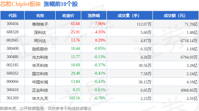 从资金流向上来看,当日芯粒Chiplet板块主力资金净流出2.49亿元,游资资金净流出6508.84万元,散户资金净流入3.14亿元。芯粒Chiplet板块个股资金流向见下表:
