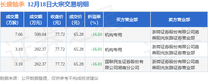 证券之星消息,12月18日长盛轴承发生大宗交易,交易数据如下: