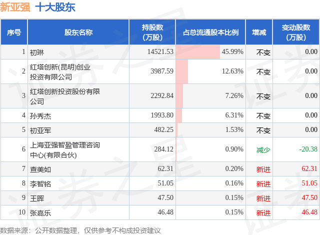 根据新亚强2025年三季报公布的十大股东详情如下:
