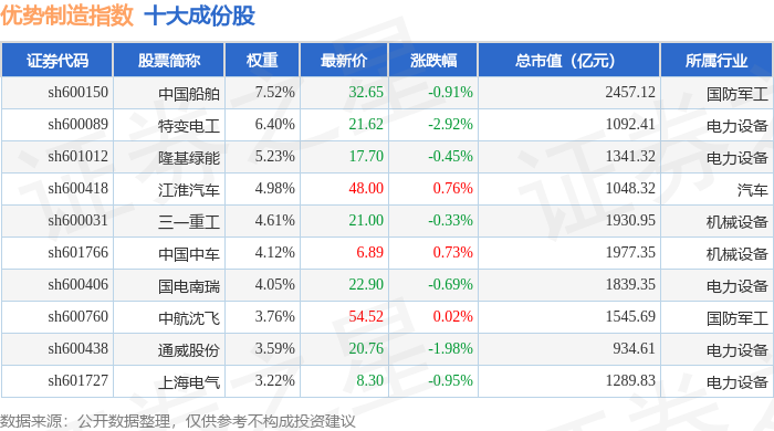 优势制造(000146)指数十大成份股详情如下: