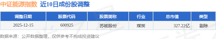 近10日内中证能源(000928)指数成份股做了调整,剔除了1只股票。
