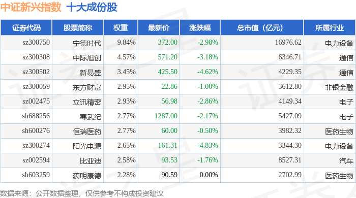 中证新兴(000964)指数十大成份股详情如下: