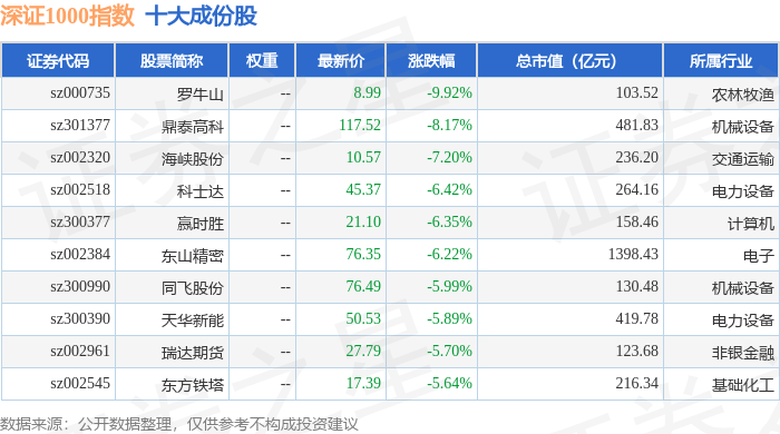 深证1000(399011)指数十大成份股详情如下: