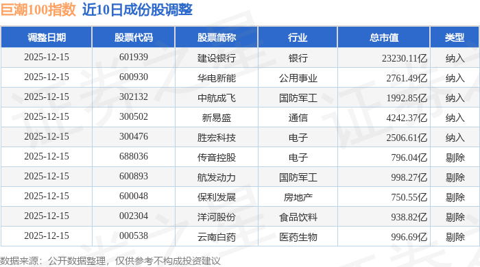 近10日内巨潮100(399313)指数成份股做了调整,新纳入了5只股票,剔除了5只股票。