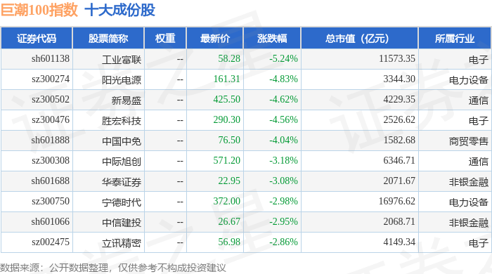 巨潮100(399313)指数十大成份股详情如下:
