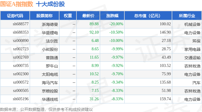 国证A指(399317)指数十大成份股详情如下:
