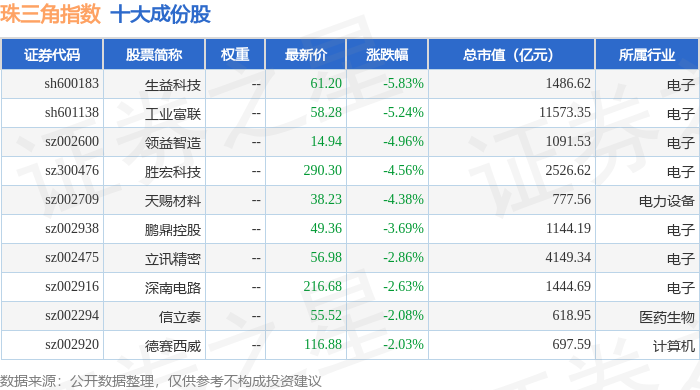 珠三角(399356)指数十大成份股详情如下: