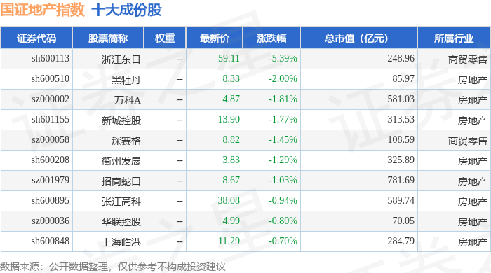 证券之星消息,12月18日,国证地产(399393)指数报收于3068.63点,跌0.44%,成交110.01亿元,换手率1.21%。当日该指数成份股中,上涨的有22家,中国武夷以10.06%的涨幅领涨,下跌的有25家,浙江东日以5.39%的跌幅领跌。