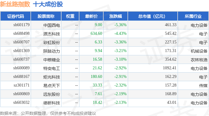近10日内新丝路(399429)指数成份股做了调整,新纳入了4只股票,剔除了4只股票。