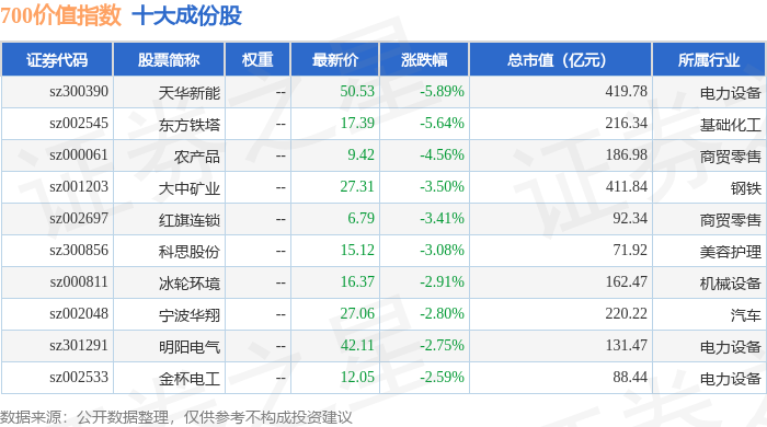 证券之星消息,12月18日,700价值(399629)指数报收于2815.75点,涨0.0%,成交476.3亿元,换手率1.52%。当日该指数成份股中,上涨的有123家,一心堂以10.03%的涨幅领涨,下跌的有99家,天华新能以5.89%的跌幅领跌。