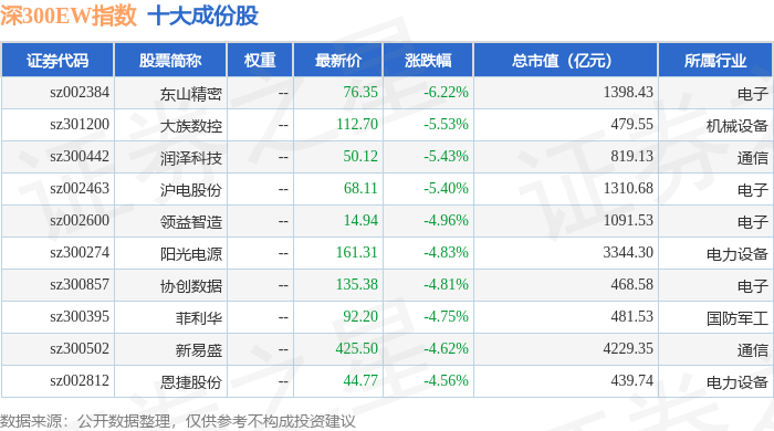 资金流向方面,深300EW(399633)指数成份股当日主力资金净流出合计154.94亿元,游资资金净流入合计33.91亿元,散户资金净流入合计121.03亿元。成份股资金流向详情见下表: