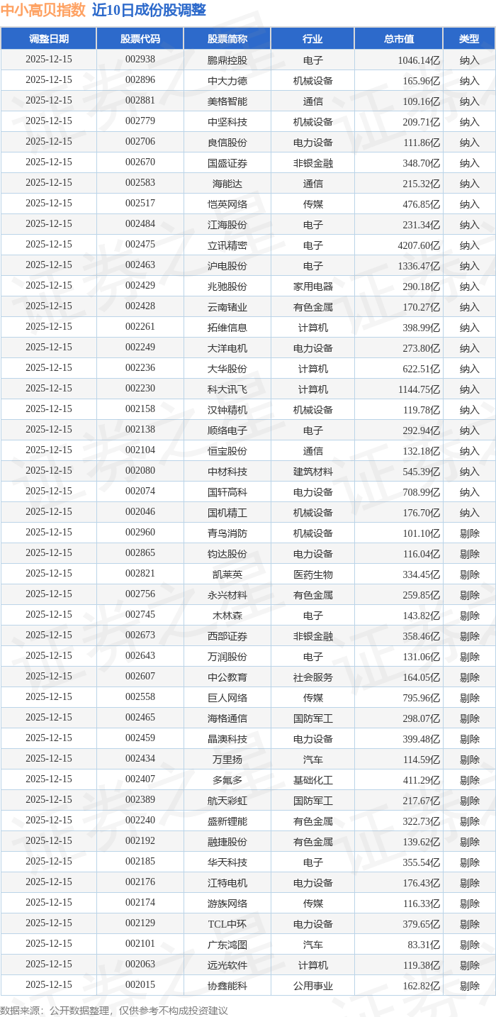 近10日内中小高贝(399664)指数成份股做了调整,新纳入了23只股票,剔除了23只股票。