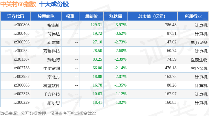 资金流向方面,中关村60(399697)指数成份股当日主力资金净流出合计4.78亿元,游资资金净流出合计1778.69万元,散户资金净流入合计4.95亿元。成份股资金流向详情见下表: