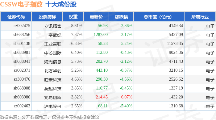 近10日内CSSW电子(399811)指数成份股做了调整,新纳入了17只股票,剔除了17只股票。
