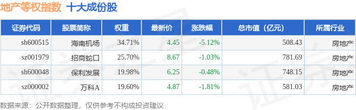 地产等权(399983)指数十大成份股详情如下: