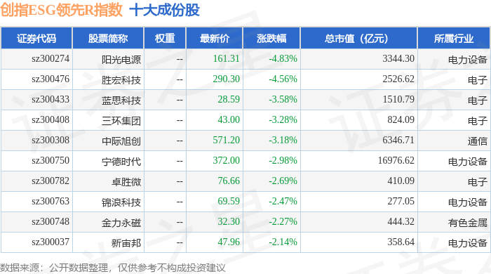 创指ESG领先R(470031)指数十大成份股详情如下: