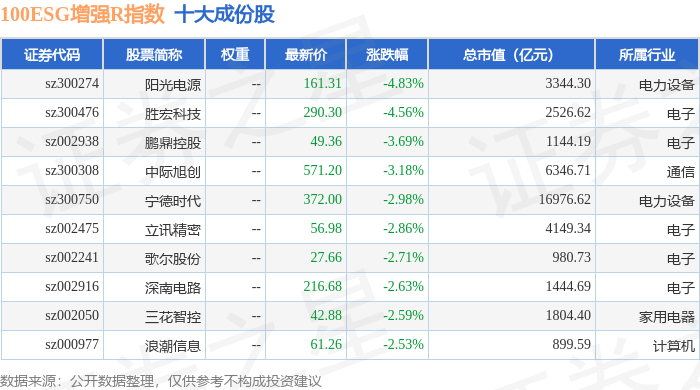 100ESG增强R(470033)指数十大成份股详情如下: