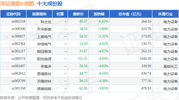 深证储能R(470036)指数十大成份股详情如下: