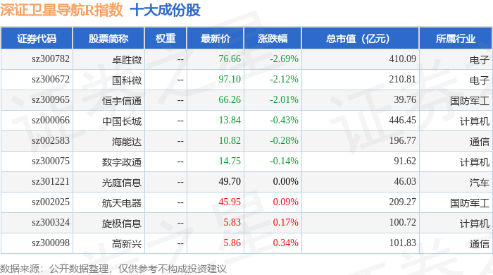 深证卫星导航R(470050)指数十大成份股详情如下: